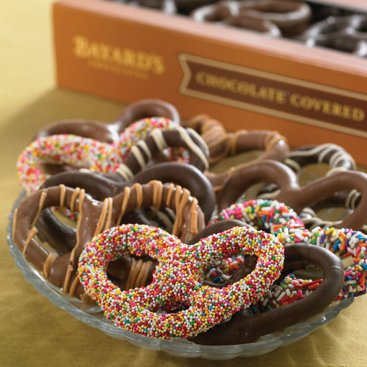 Classic three-ring pretzels are baked in old-world brick ovens and dipped in Bayard's milk or dark chocolate to make a crunchy combination that's sweet and salty all-in-one.