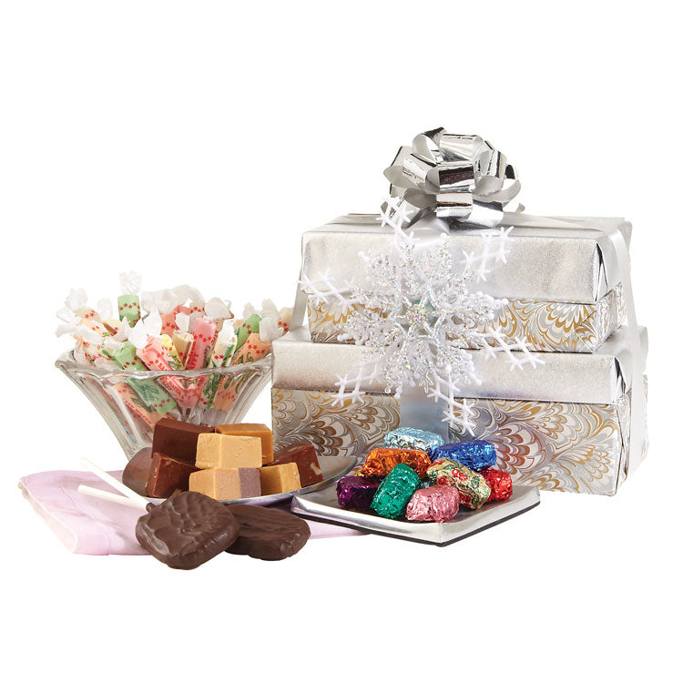 Sweeten things up with this towering, three-part gift bonanza that delivers a half pound box of Fralinger’s Salt Water Taffy, 8oz. milk & dark butter creams, 12 Fralinger's Molasses Chocolate Covered Taffy Paddle Pops, and one and a quarter pound box of Fralinger's Fudge.