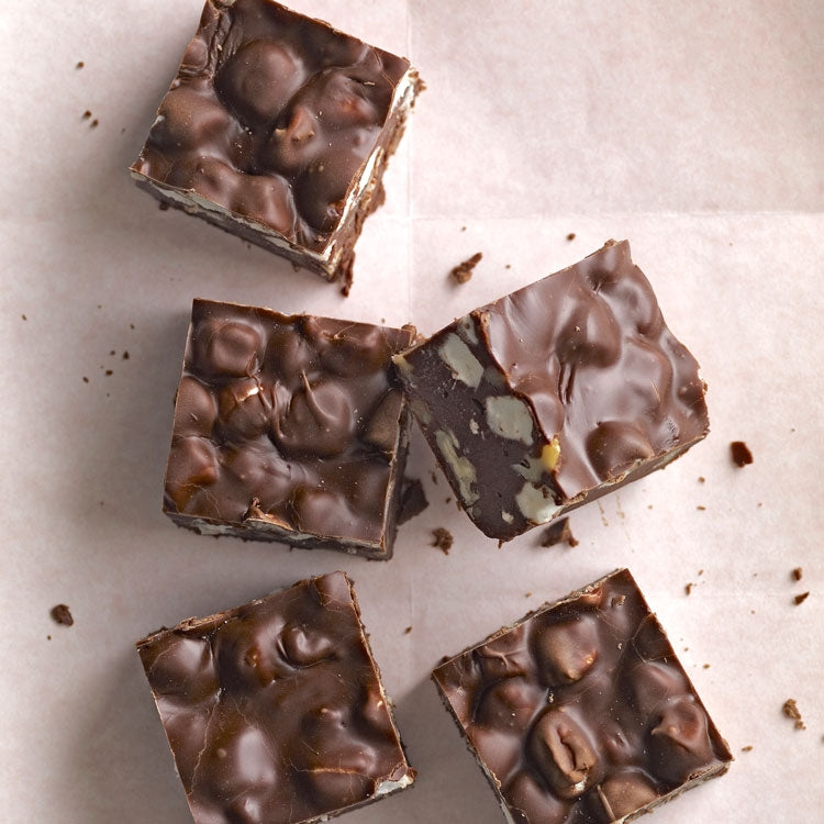 Our classic Chocolate Fudge mixed with Mini Marshmallows and Walnuts.